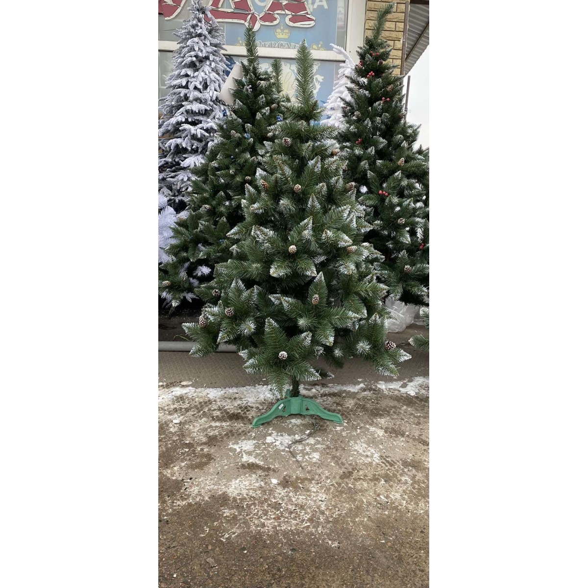 Искусственная елка со снежным напылением и шишками — размеры 1.5 м, 1.8 м, 2.0 м, 2.2 м