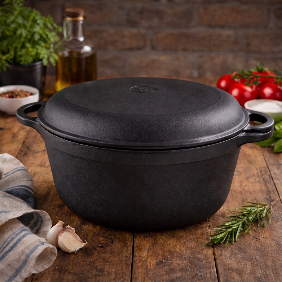Для тех, кто ищет идеальное сочетание функциональности, наши чугунные кастрюли с крышкой-сковородой - это ответ. Этот удивительный продукт позволяет вам не только готовить на кастрюле, но и обжаривать и поджаривать на крышке-сковороде. Это настоящий многозадачник для кулинара, который ценит эффективность и удобство.