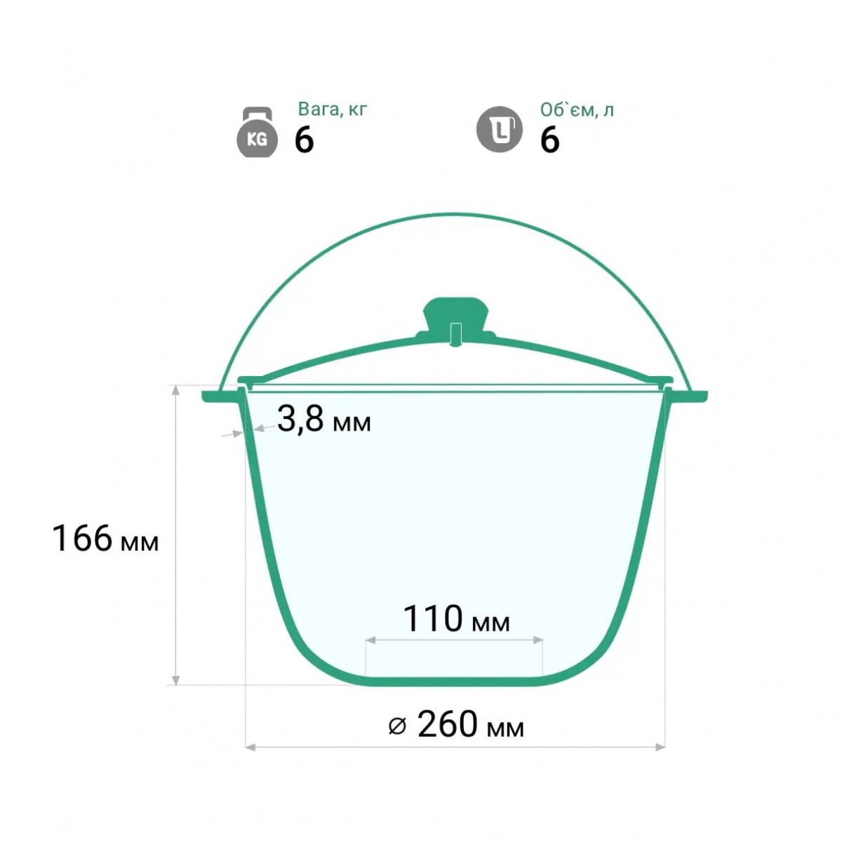 Казан чугунный 6 л Brizoll туристический с крышкой