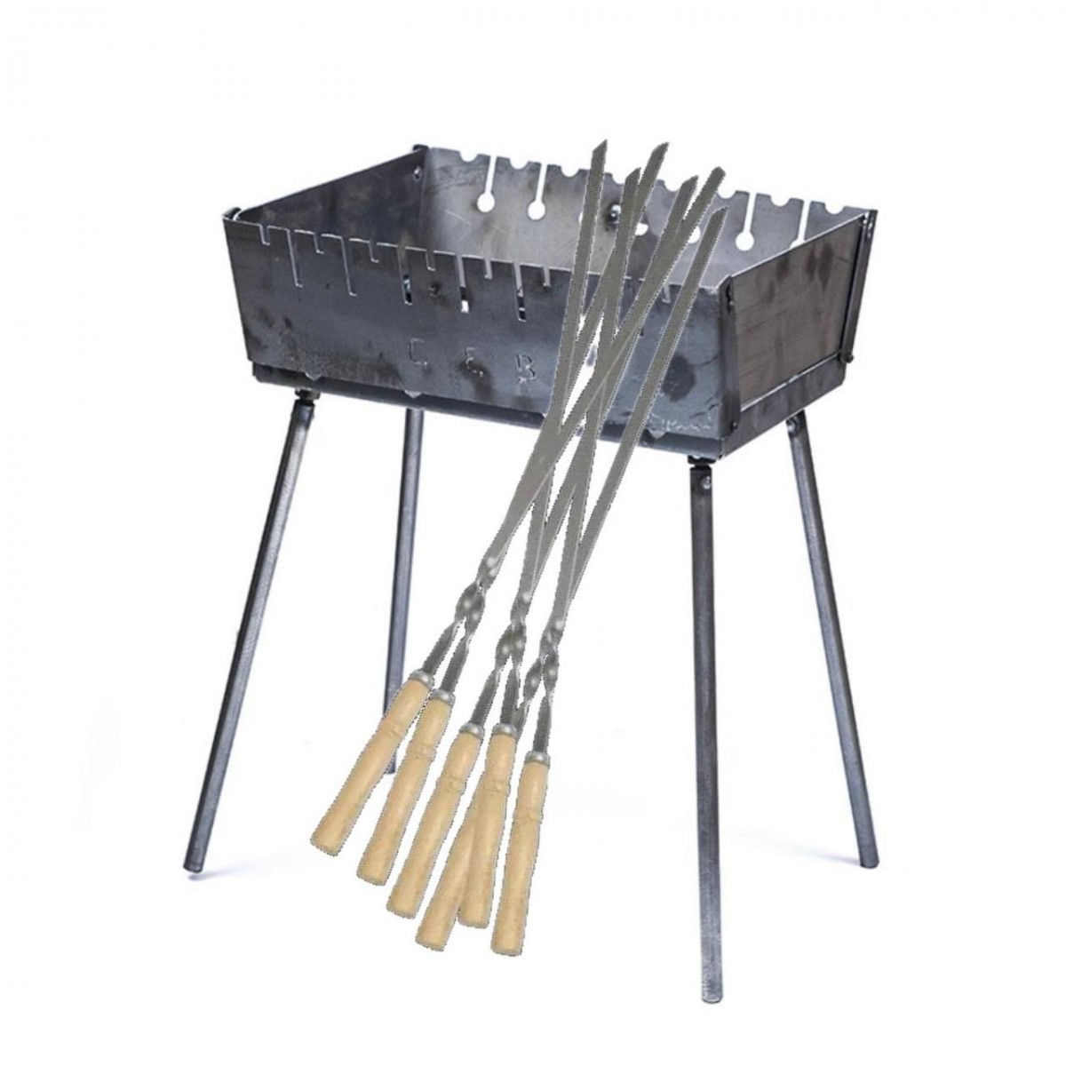 Мангал + 8 шампуров с деревянной ручкой – не нужно ничего докупать, сразу на природу