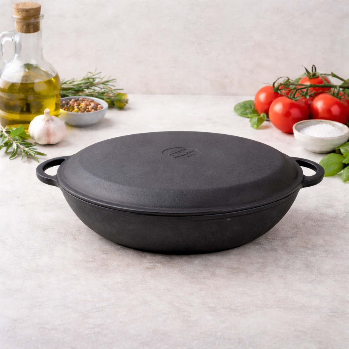 Сковорода чугунная жаровня с крышкой сковородой 400х90мм Ситон